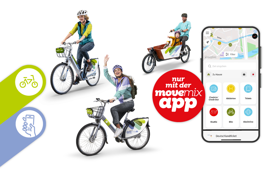 Und noch cleverer ist das movemix_abo: Damit kannst du unser Bikesharing-Angebot movemix_bike zum Beispiel mit deinem D-Ticket oder mit den Vorteilen eines ABO-Flex kombinieren. Das spart Kosten und ermöglicht mehr Flexibilität. Mehr dazu unter www.havag.com/movemix_abo