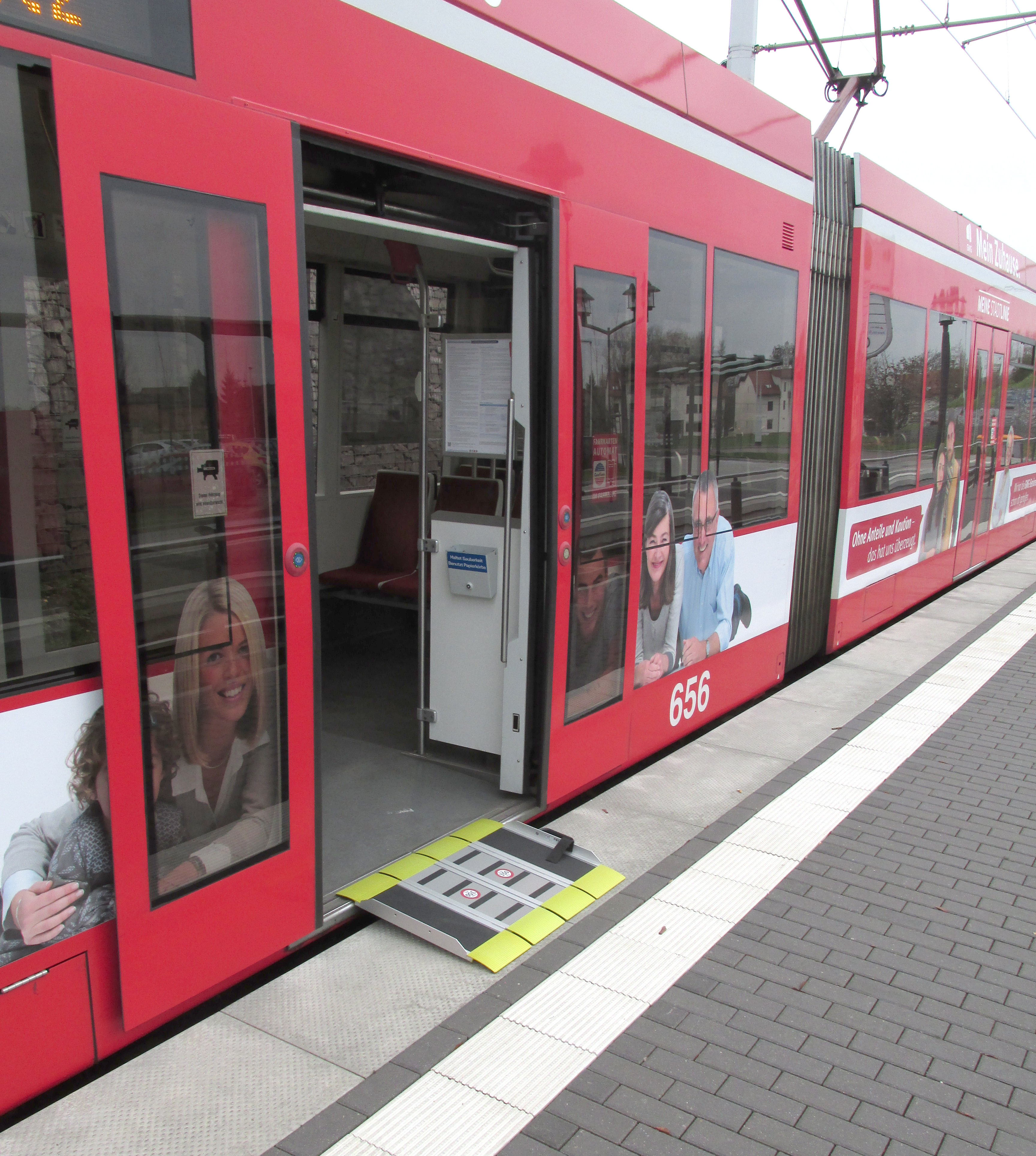 In den älteren Niederflurfahrzeugen der Halleschen Verkehrs-AG, einem Unternehmen der Stadtwerke Halle, werden derzeit mobile Rampen nachgerüstet, um einen behindertengerechten Einstieg zu ermöglichen. Jede Bahn des Typs MGT6 erhält an der Mitteltür eine solche Brücke, um den Spalt zwischen Fahrzeugkante und Bahnsteig zu schließen und ein einfaches Hinein- und Herausrollen zu ermöglichen.