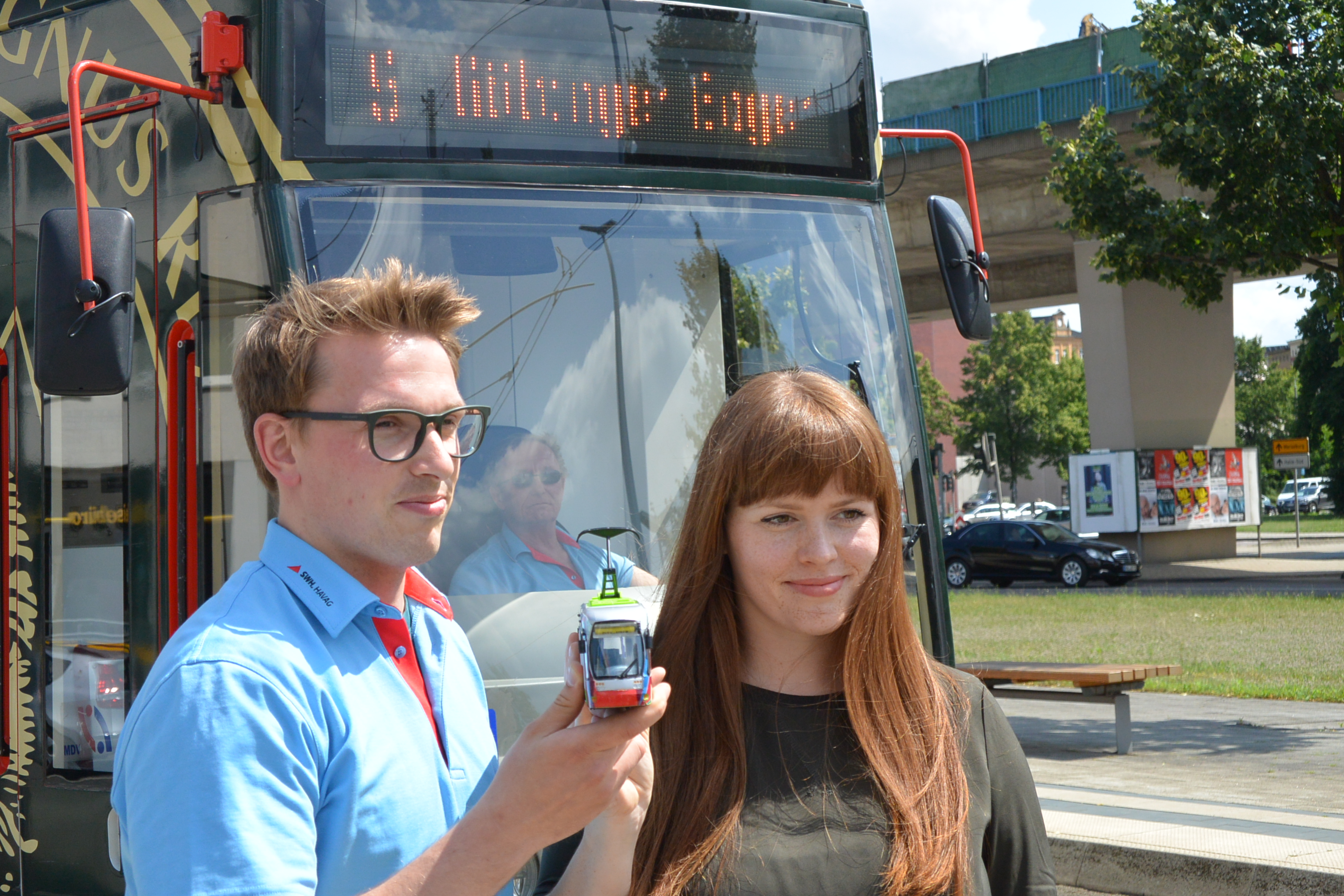 Halle (Saale), 4. Juli 2017 – Unter dem Motto „Wissenschaft goes Praxis“ hatten Therese Kästner und Florian Henze, beide Psychologen am Institut für Arbeits-, Organisations- und Sozialpsychologie der Martin-Luther-Universität Halle-Wittenberg (MLU), 2015 das Projekt „Strab auf Trab“ gestartet. Kürzlich erhielt genau dieses Projekt den Transferpreis der MLU. Das Preisgeld in Höhe von 1.000 Euro hat die Stadt Halle gestiftet. Weil die Stadtwerke-Tochter HAVAG dieses Geld direkt den beiden Wissenschaftlern zukommen lassen möchte, überreichte René Walther, Geschäftsführer der Stadtwerke Halle, heute symbolisch einen Scheck.