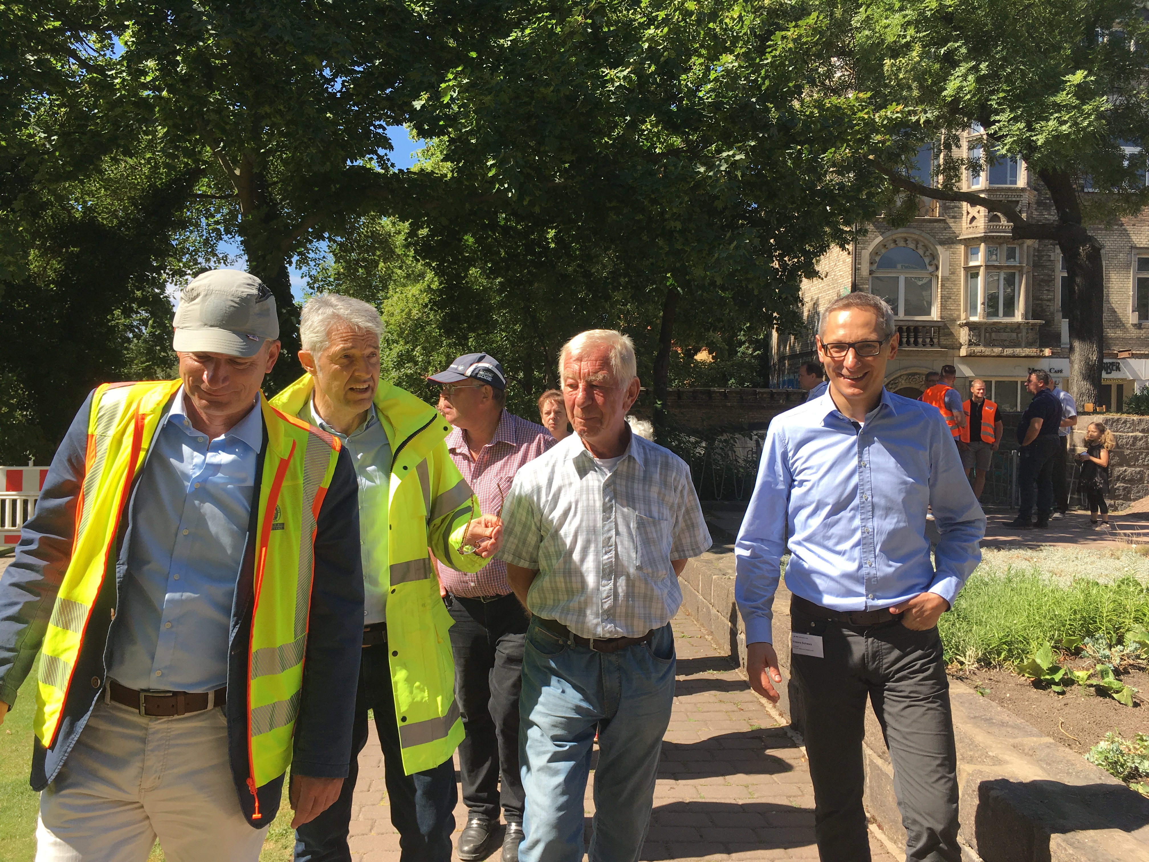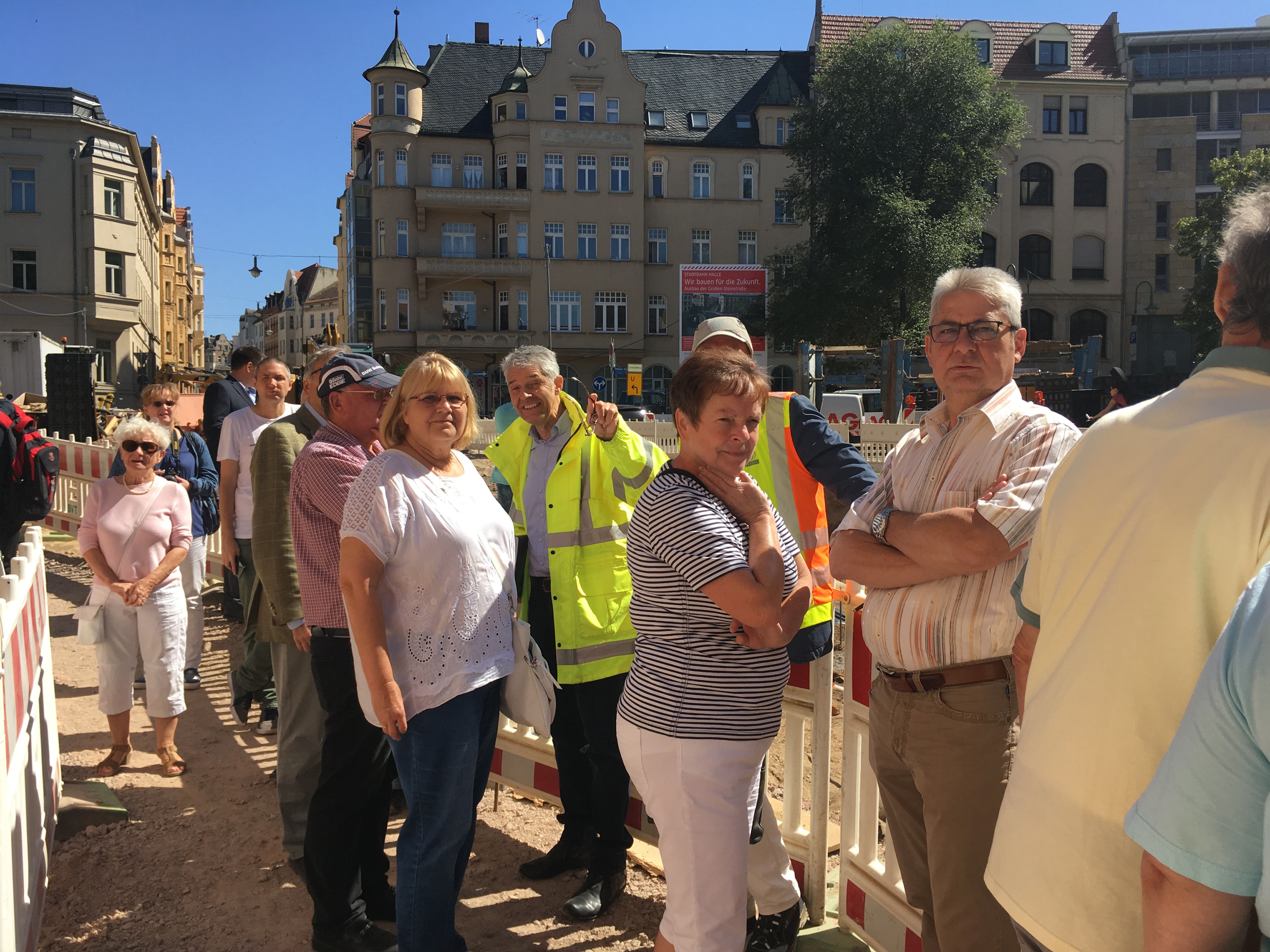 Gerd Blumenau, Prokurist und Chef des Programms STADTBAHN Halle, freut sich: „Es ist schön, dass so viele Hallenser und Hallenserinnen zu unserem Fest gekommen sind. Das Betreten der Baustelle war heute auch ausdrücklich erwünscht.“ Zudem erfuhren interessierte Besucherinnen und Besucher während der Führungen über die Baustelle, ob die Bauarbeiten in der Großen Steinstraße im Plan sind, was wann passiert und wie die Große Steinstraße einmal aussehen soll.
