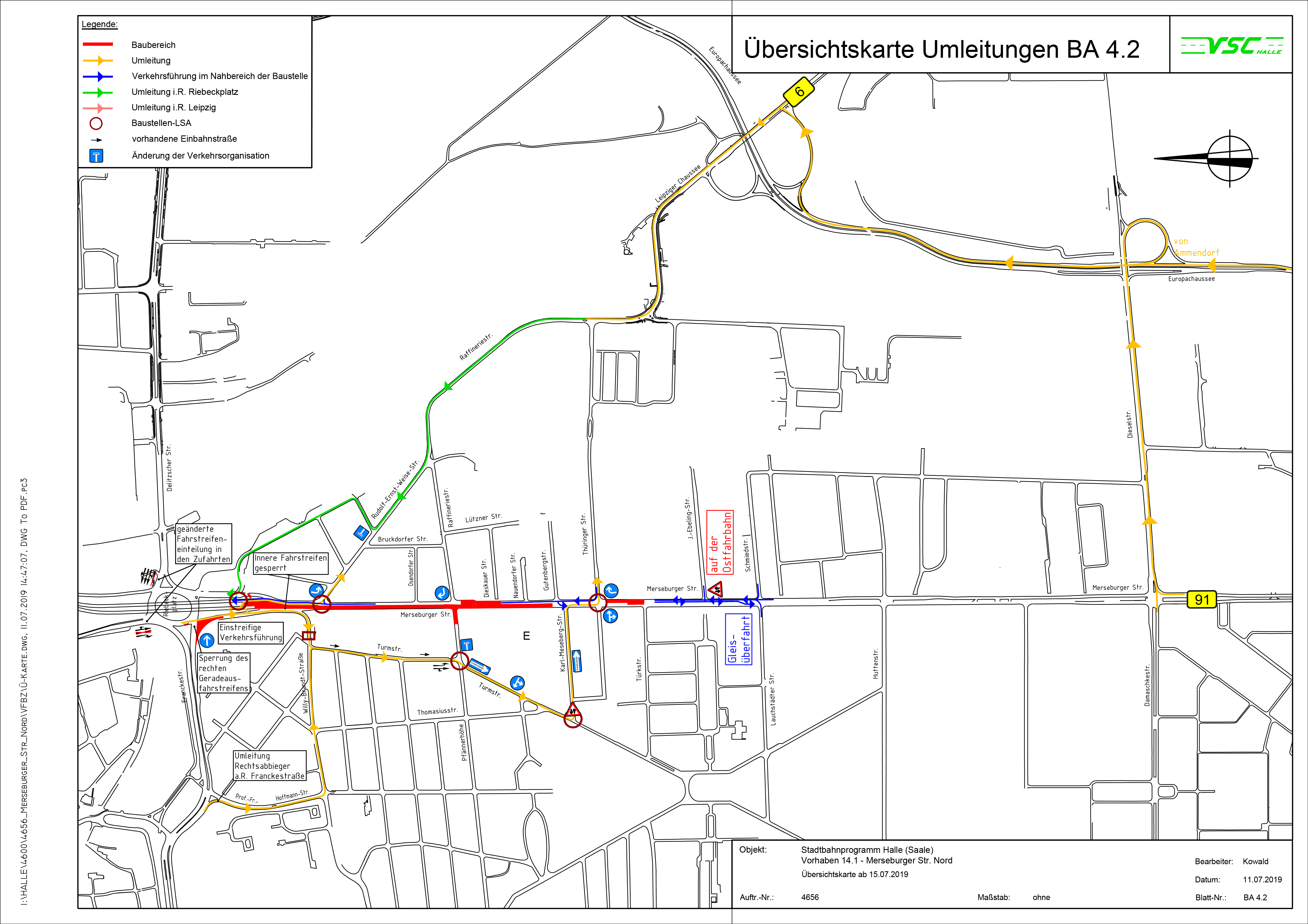 Anliegende aus der Merseburger Straße können die Bundestraße 80 (Hochstraße) über den Riebeckplatz wie gewohnt erreichen. Die Zufahrt zum Riebeckplatz ist während der Arbeiten nur über die Rudolf-Ernst-Weise-Straße, die Buddestraße und die Ernst-Kamieth-Straße möglich. Der Kfz-Verkehr von der Bundesstraße 80 in die Rudolf-Ernst-Weise-Straße ist von den Änderungen nicht betroffen.