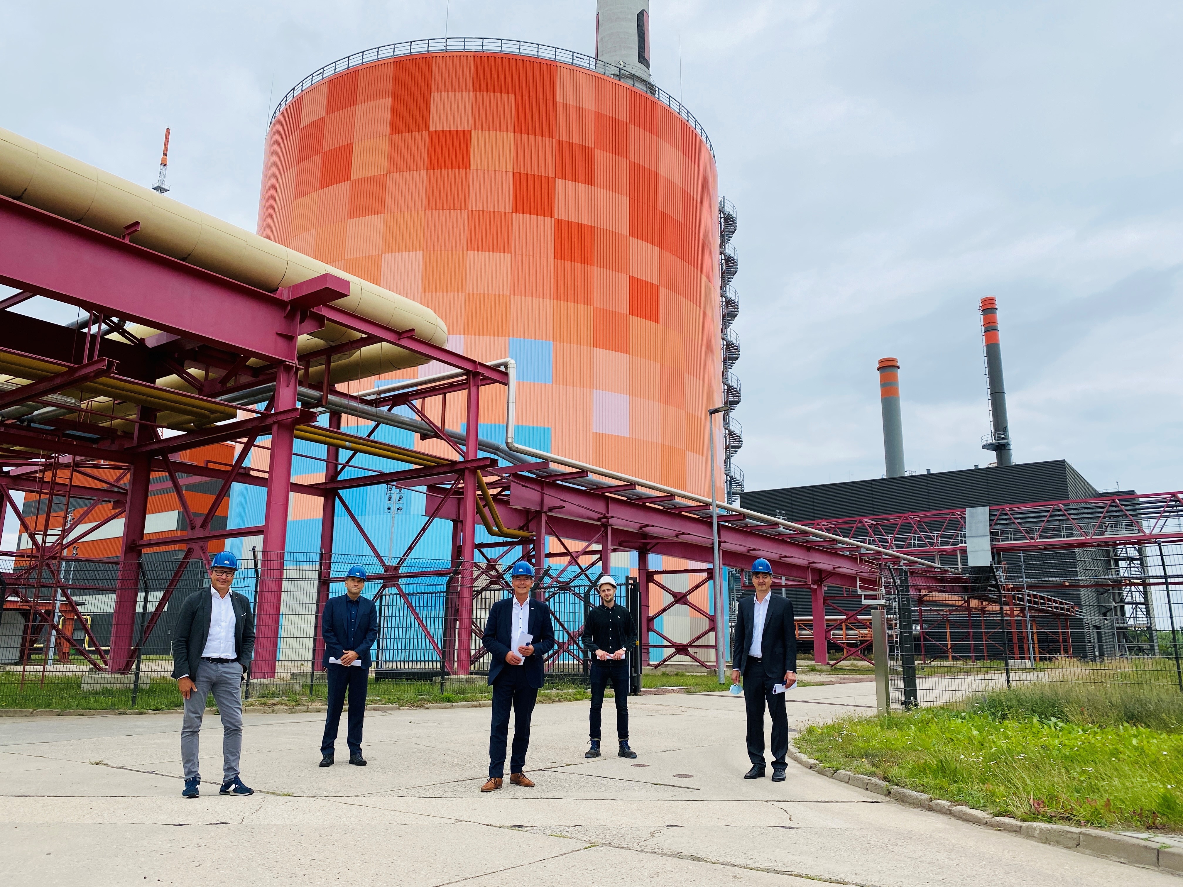 Ein weiterer Stopp war der Energiepark Dieselstraße mit dem Energie- und Zukunftsspeicher: „Wir betreiben den in seiner Bauart weltweit größten Wärmespeicher. Mit einem Volumen von 50.000 Kubikmetern wurde er 2019 in Betrieb genommen. Zudem haben wir vor wenigen Wochen die Modernisierung unserer KWK-Anlage im Kraftwerk Dieselstraße mit drei Gasturbinen abgeschlossen – trotz Pandemie planmäßig in Zeit und Geld. Das Investitionsvolumen betrug 100 Mio. Euro“, so Matthias Lux.