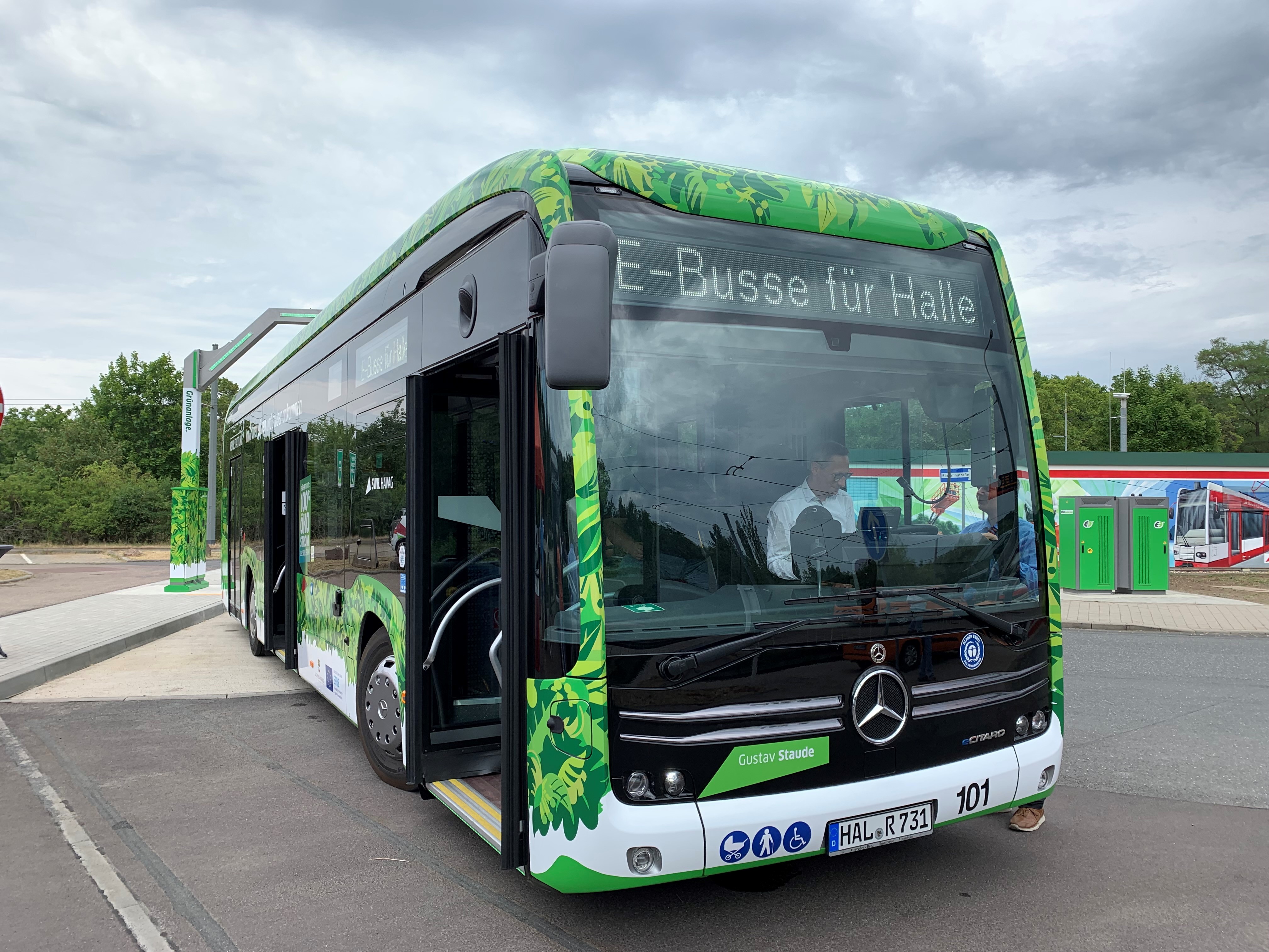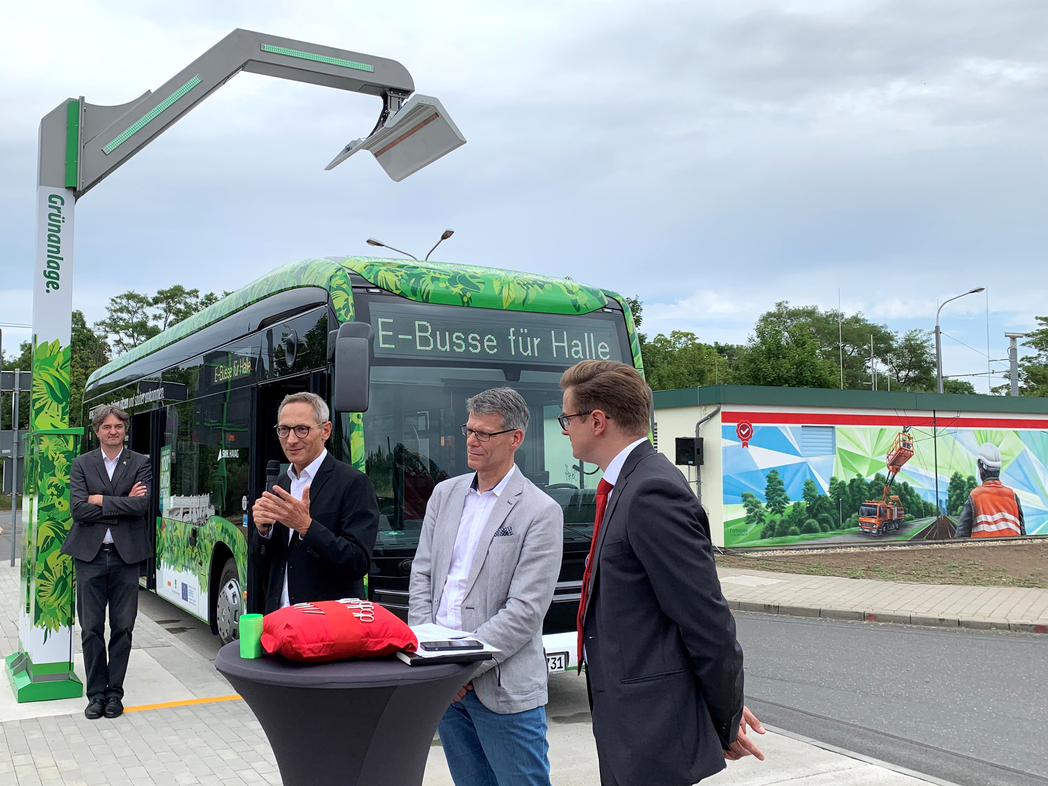 Ab Montag, 27. Juni 2022, setzt die Hallesche Verkehrs-AG (HAVAG), ein Unternehmen der Stadtwerke Halle-Gruppe - erstmalig in Sachsen-Anhalt - drei Elektrobusse im Linienverkehr ein. Egbert Geier, Bürgermeister der Stadt Halle (Saale), Sven Haller, Staatssekretär im Ministerium für Infrastruktur und Digitales, Peter Panitz, Geschäftsführer der Landesgesellschaft Nahverkehrsservice Sachsen-Anhalt GmbH, Matthias Lux, Vorsitzender Geschäftsführer der Stadtwerke Halle GmbH und Vinzenz Schwarz, Vorstand der HAVAG durchschnitten gemeinsam symbolisch am 24. Juni 2022 das Band zur feierlichen Inbetriebnahme. Das Projekt wird gefördert von Mitteln des Europäischen Fonds für regionale Entwicklung (EFRE) über eine Richtlinie des Landes Sachsen-Anhalt und soll die Mobilitätswende zur Erreichung der Klimaziele unterstützen.