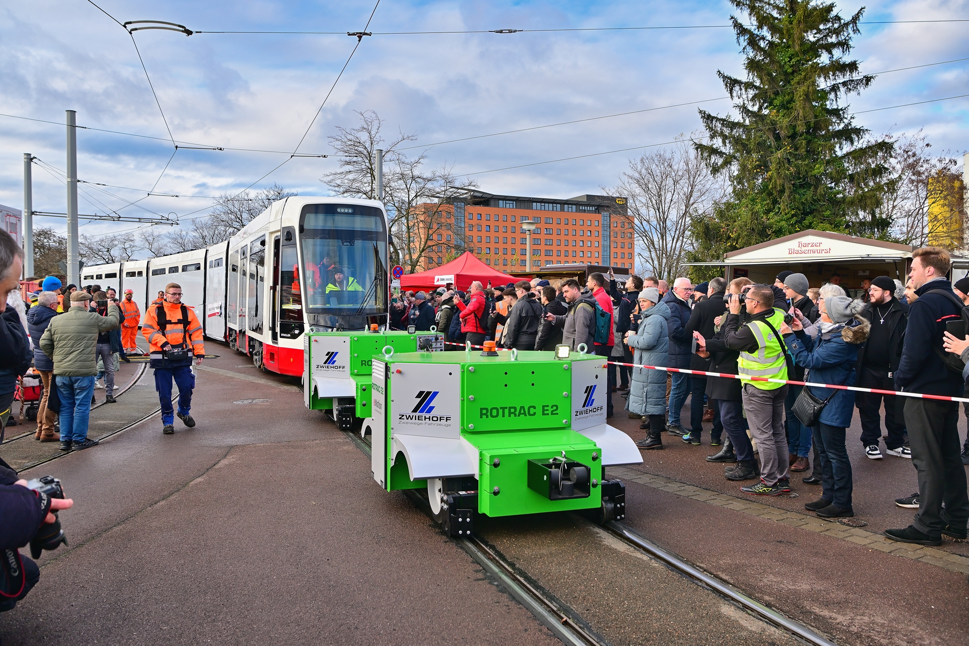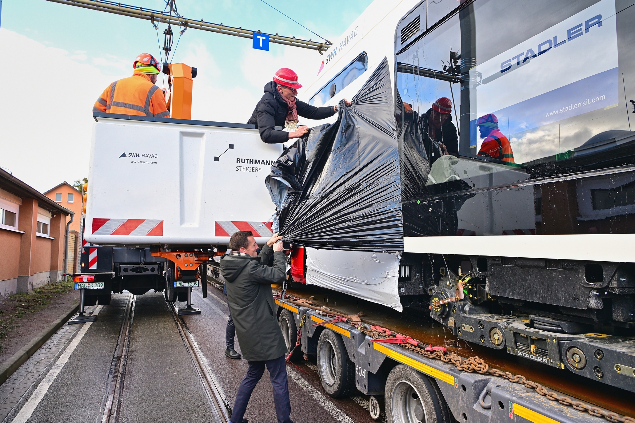 Die erste Straßenbahn einer völlig neuen Generation „TINA“ von Schienenfahrzeugen kam heute bei der Halleschen Verkehrs-AG (HAVAG), einem Unternehmen der Stadtwerke Halle-Gruppe, an. TINA (Total Integrierter Niederflurantrieb) ist im Innenraum vollständig stufenlos, und wird mit einem hochmodernen Design und neuesten Fahrzeug- und Sicherheitstechnologien ein völlig neues Straßenbahnfahren mit der HAVAG bieten: attraktiv, klimafreundlich, komplett barrierefrei. Der Schweizer Schienenfahrzeughersteller Stadler lieferte die erste Straßenbahn in die Saalestadt, weitere folgen im kommenden Jahr. Ab 2025 ersetzen nach ausgiebigen Tests insgesamt 56 neue Triebwagen Schritt für Schritt die Niederflurbahnen MGT6D, die seit fast 30 Jahren im Dauereinsatz durch die Saalestadt fahren und dann in Rente gehen.