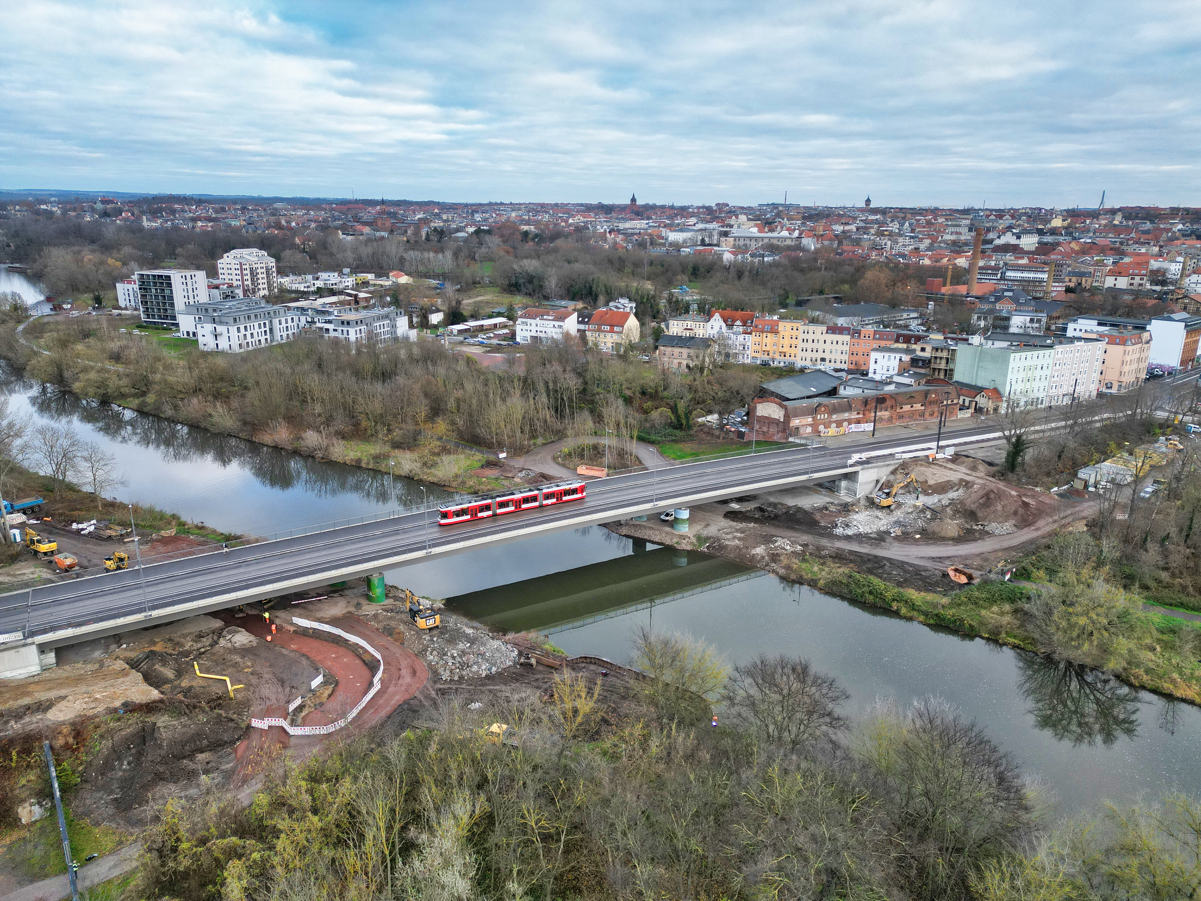 Die Jury des Deutschen Brückenpreises hat am Mittwochabend in Dresden den Deutschen Brückenbaupreis verliehen. In der Kategorie „Straßen- und Eisenbahnbrücken“ erhielt der Bau der Elisabethbrücke eine Auszeichnung. Damit wird der Bau der Elisabethbrücke, die im Rahmen des Programms STADTBAHN Halle errichtet wurde, für seine moderne, nachhaltige und effiziente Bauweise geehrt. Mit dem Brückenbau innerhalb nur eines Jahres hat die Hallesche Verkehrs-AG (HAVAG), ein Unternehmen der Stadtwerke Halle, termintreu und kostenbewusst gebaut, und dies bei Einhaltung aller regulatorischen Anforderungen und hoher öffentlicher Zufriedenheit. Jetzt ist das Vorhaben als eine von drei Brücken in der Kategorie „Straßen- und Eisenbahnbrücken“ für den Deutschen Brückenbaupreis 2025 mit einer Auszeichnung bedacht worden.